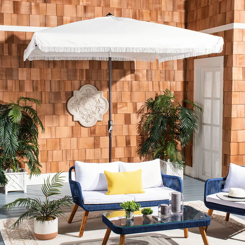 Add much needed shade to your patio with this Safavieh Milan Fringe Square Crank Umbrella.