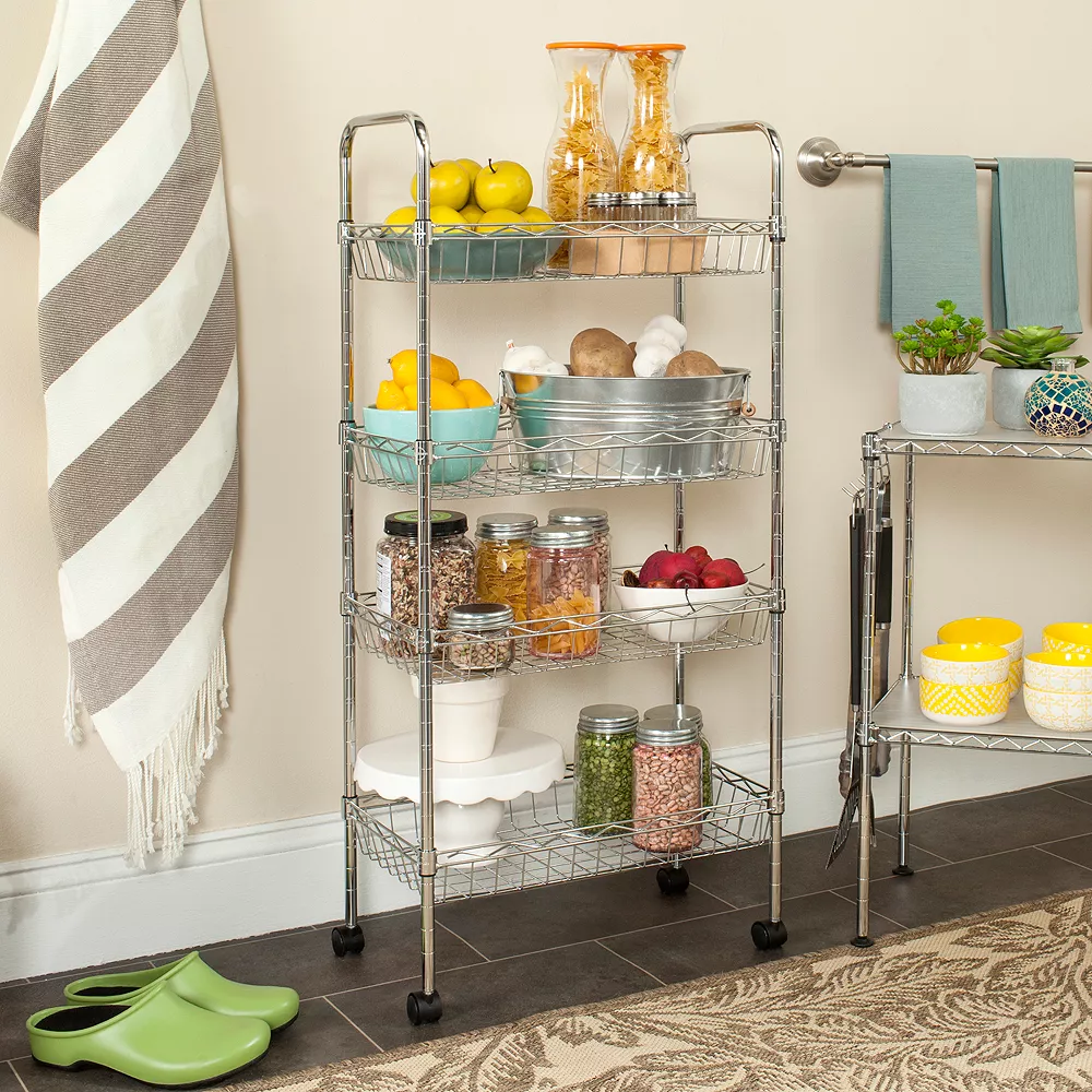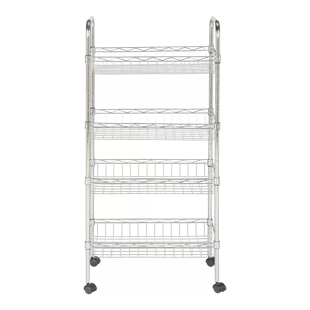 With four tiers of basket-style shelving, the Pierre Adjustable Mini Trolley adds instant storage to any space.