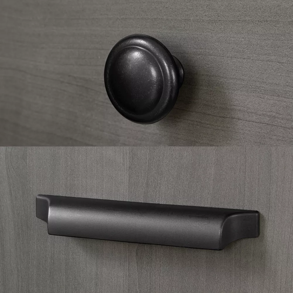 - Clean lines, coordinated handles and rounded kick plate for a timeless look