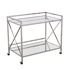 The Southern Enterprises Maxton Gold Bar Cart is perfect for serving snacks, cocktails, and more with its elegant and retro-style design.