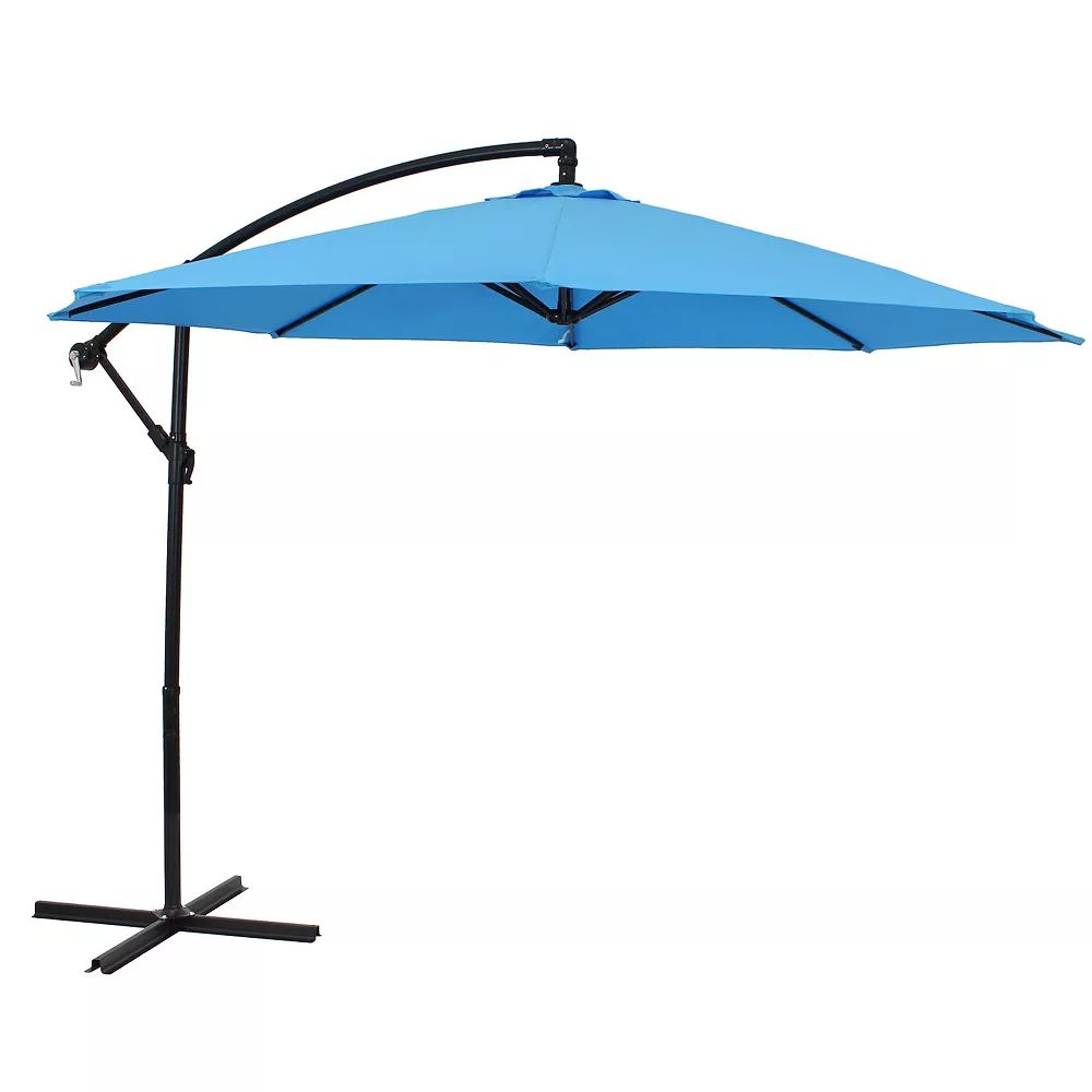 Provide style and shade for your outdoor living space with this outdoor, offset, cantilever patio umbrella featuring a crank for easy accessibility. Constructed of waterproof polyester, the umbrella canopy is designed to be durable to hold up to the elements year after year. The umbrella is held together by a durable steel base and pole that provide a sturdy frame for resistance to harsh wind. This outdoor patio accessory is easy to set up and adjust with the cantilever and crank. This umbrella will be the perfect addition to the patio, deck, backyard, and any other outdoor living space where you want to stay cool in the heat. Please note, a heavy base is necessary to place on the cross base to keep this umbrella securely in place (a heavy base is not included and must be purchased separately). Available in many colors, get the patio umbrella that best fits your outdoor aesthetic.