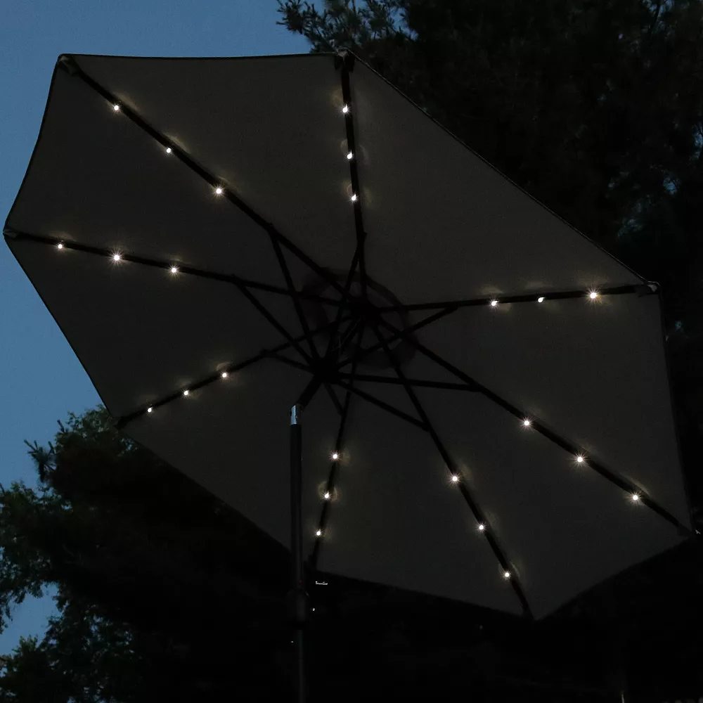 - ENJOY YOUR UMBRELLA AT NIGHT: The LED lights on this 9-foot patio umbrella feature a 12000mcd brightness with a Kelvin color temperature of approximately 6000K.