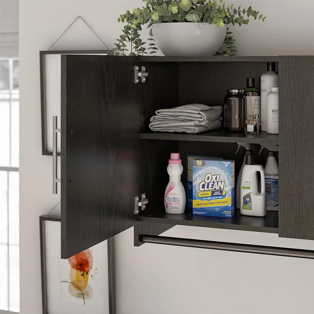 Create an organized oasis with this stylish Systembuild Evolution Camberly 3-Door Wall Cabinet with Hanging Rod.
