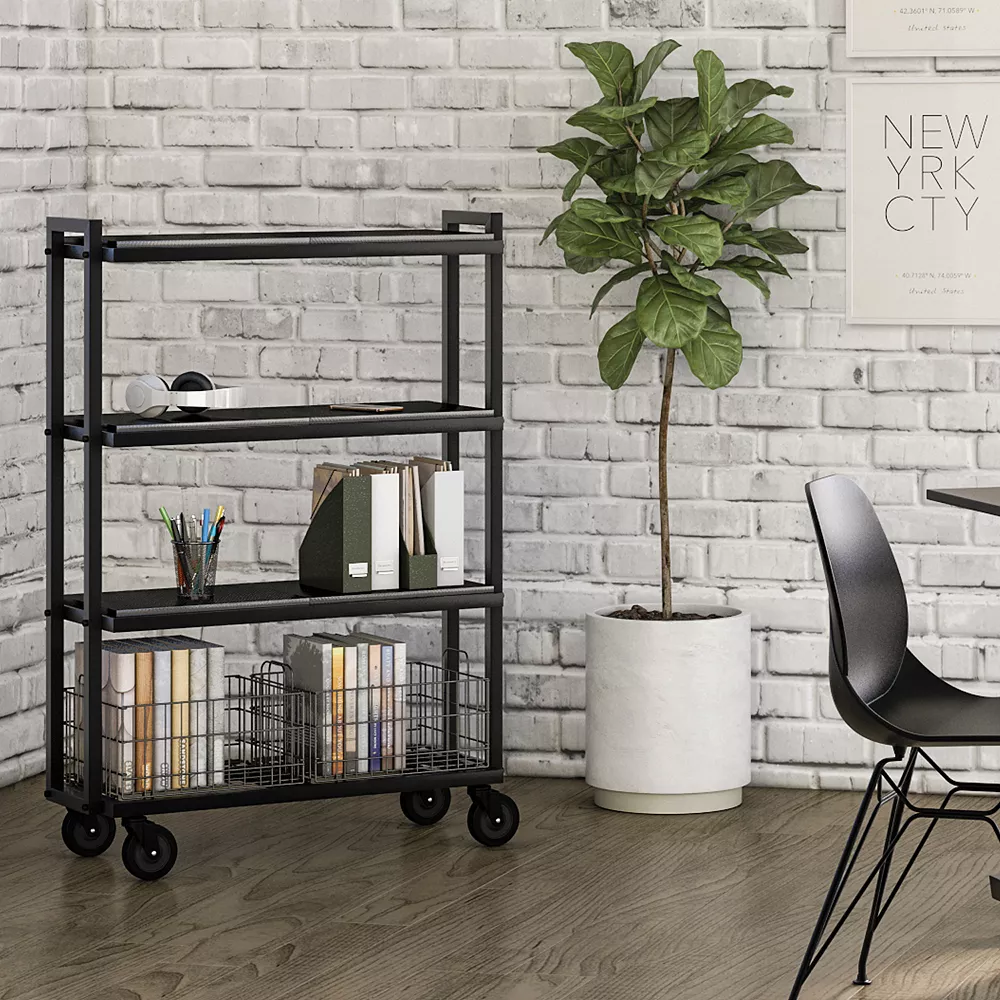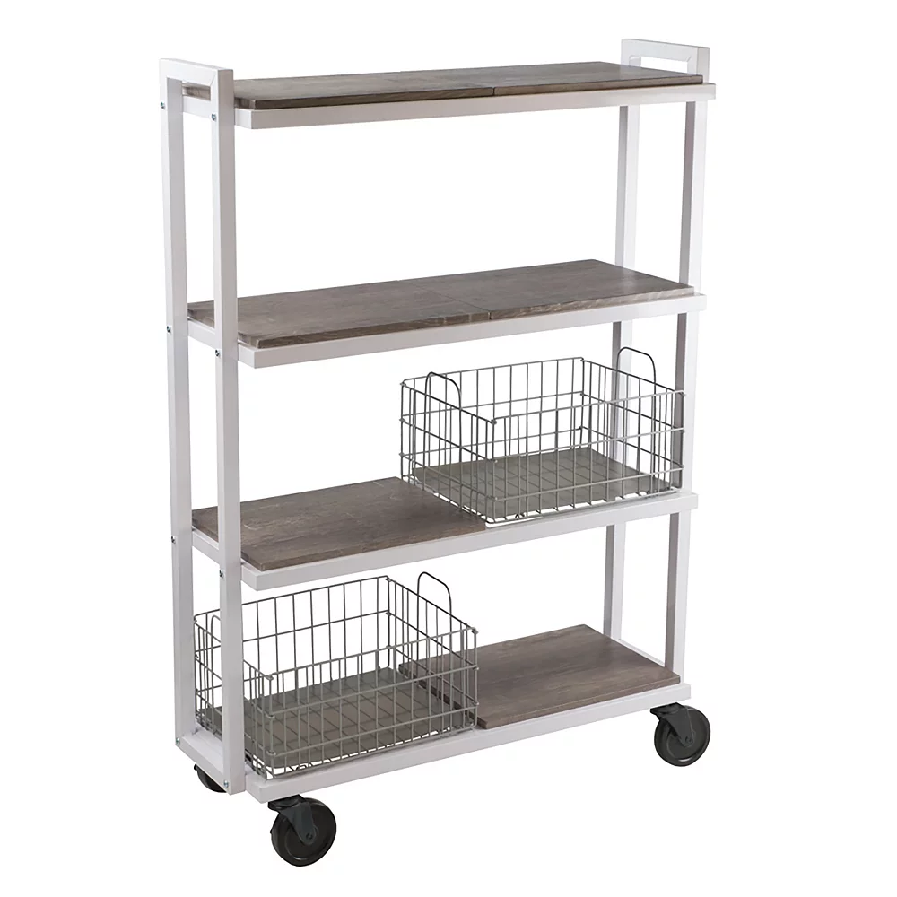 Versatile and stylish, this wheeled kitchen cart and storage basket set is perfect for your kitchen or dining room.