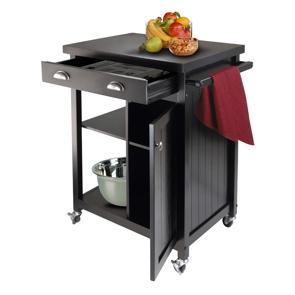Prepare your dinner quickly thanks to this Winsome kitchen cart. In black.