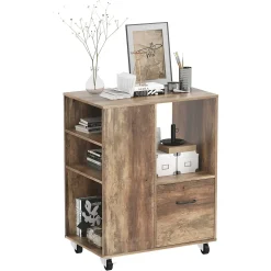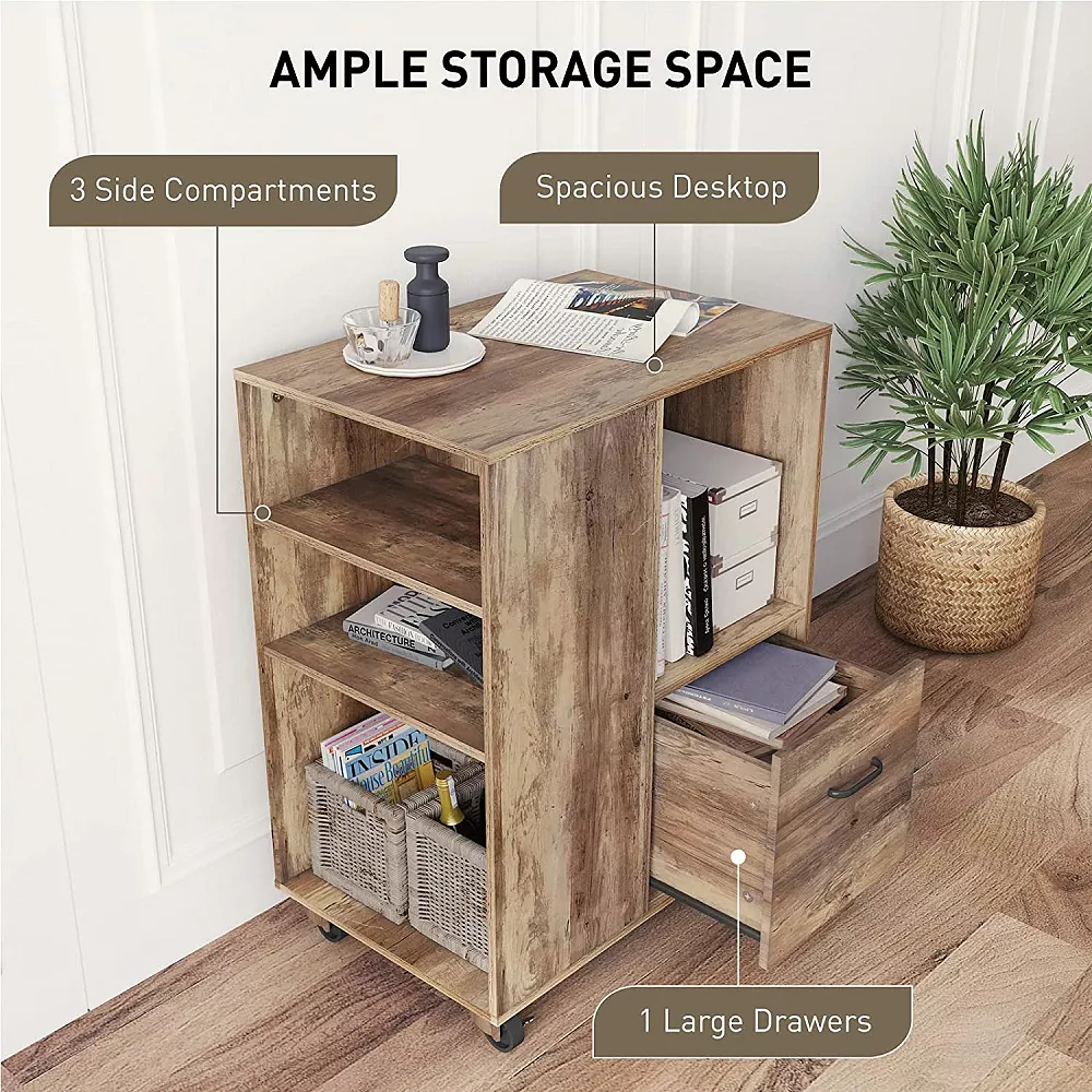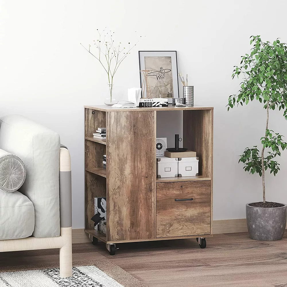 Liven up any environment with this Mobile Wood Office Storage Cabinet from Year Color. This expertly designed piece is extremely stylish to go effortlessly with a variety of different decoration styles and aesthetics. Put it in your living room, bedroom, study, office, or other location and it will be the perfect addition. The three large open spaces on the side are ideal for your books and dictionaries and the one drawer at the bottom is great for keeping your smallest office supplies within reach. It is crafted from high-quality materials to provide a sturdy piece that will last in your home or office for a long time to come. Incredibly easy to assemble, it comes with clear instructions that will allow you to have it put together in no time. It will make for a lovely gift for anyone in your life as a holiday, wedding, or housewarming present. For combined beauty and quality, get the Mobile Wood Office Storage Cabinet from Year Color.