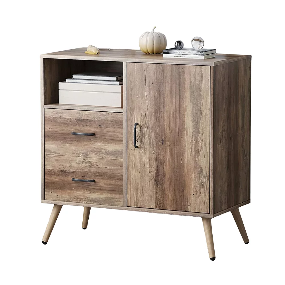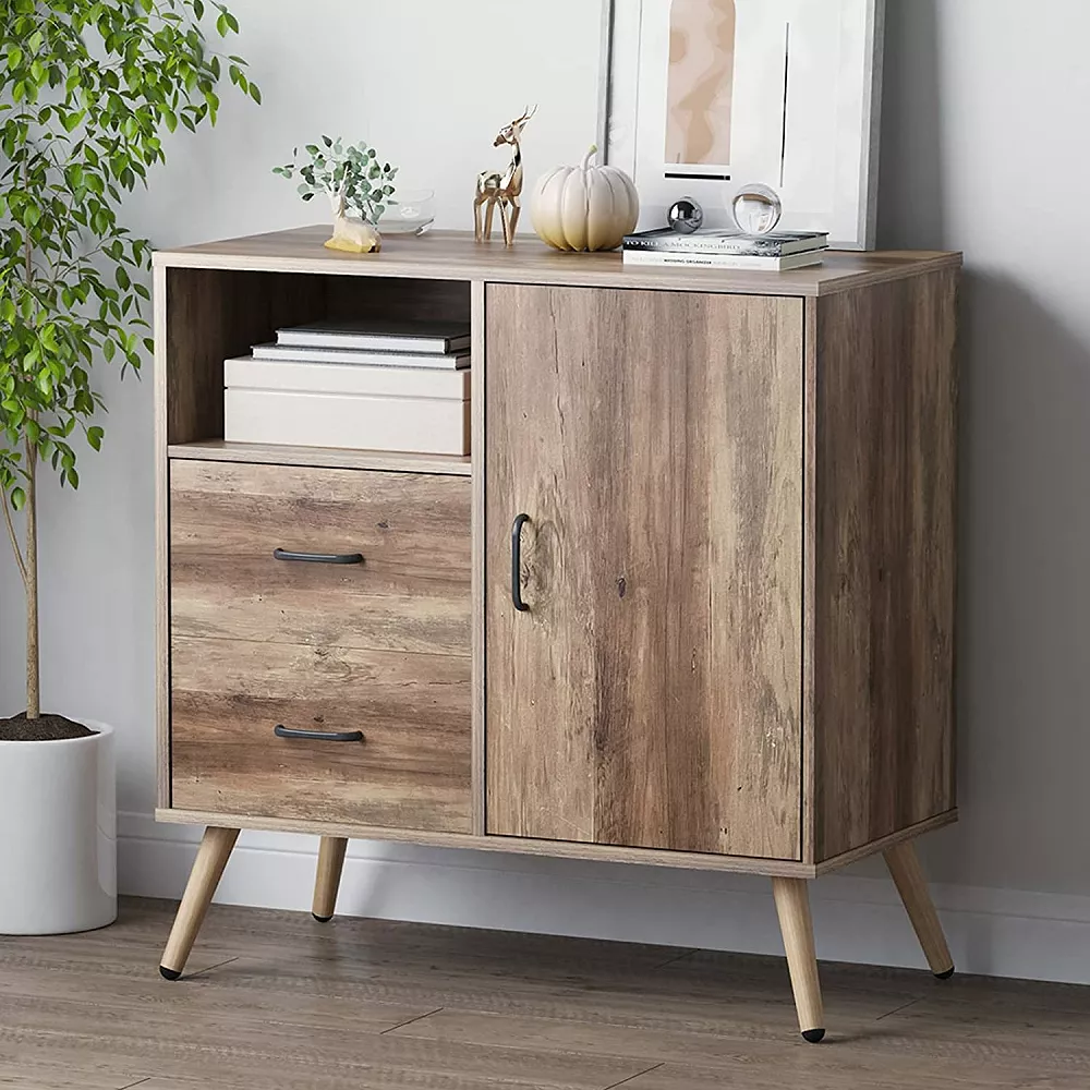 Liven up any environment with this Rustic Storage Cabinet from Year Color. This storage cabinet can provide both hidden storage and open storage to meet different needs. This expertly designed piece is extremely stylish to go effortlessly with a variety of different decoration styles and aesthetics. Its beautiful and elegant brown wood grain surface can be well-matched with different interior decoration styles. Put it in your living room, bedroom, study, office, or other location and it will be the perfect addition. It is crafted from high-quality materials to provide a sturdy piece that will last in your home or office for a long time to come. Incredibly easy to assemble, it comes with clear instructions that will allow you to have it put together in no time. It will make for a lovely gift for anyone in your life as a holiday, wedding, or housewarming present. For combined beauty and quality, get the Rustic Storage Cabinet from Year Color.